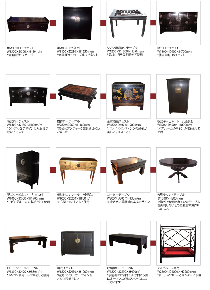 お客様のイメージをそのままの形に仕立てたフルオーダーの数々はまるで代々受継がれてきたアンティークのような風格が魅力です。